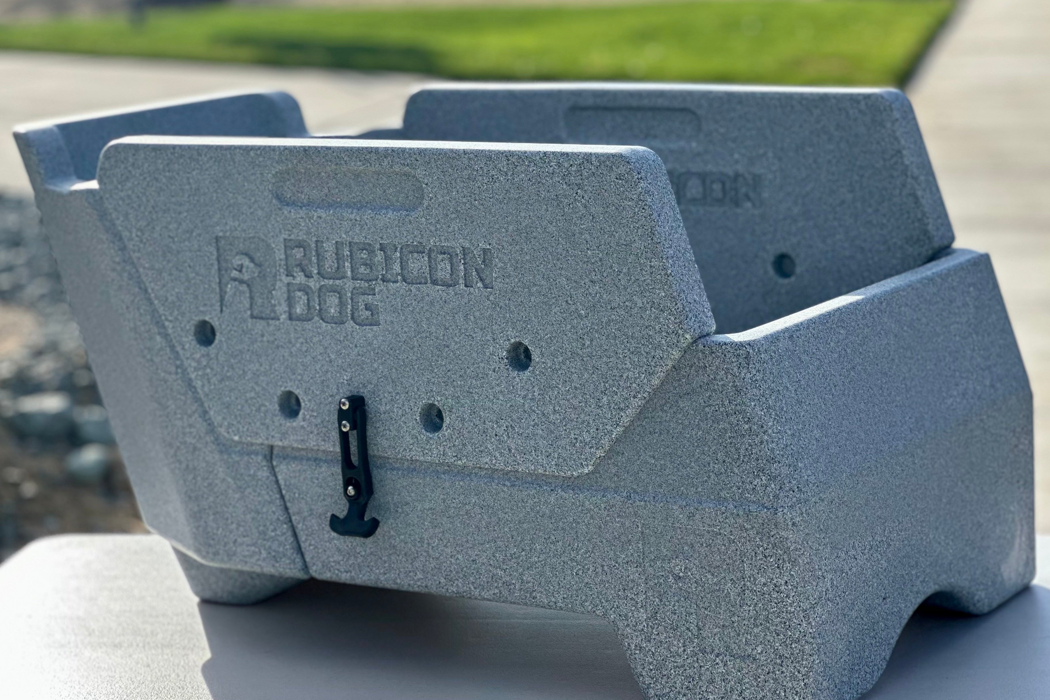 The Rubicon Dog open top dog crate pairs well with our optional tether and carabiner seatbelt system for enhanced safety. The tether keeps your dog securely in place, preventing movement during travel. The seatbelt straps the crate down, ensuring it stays stable and doesn’t shift while driving. This combination provides peace of mind, knowing your dog is safe and the crate is secure.