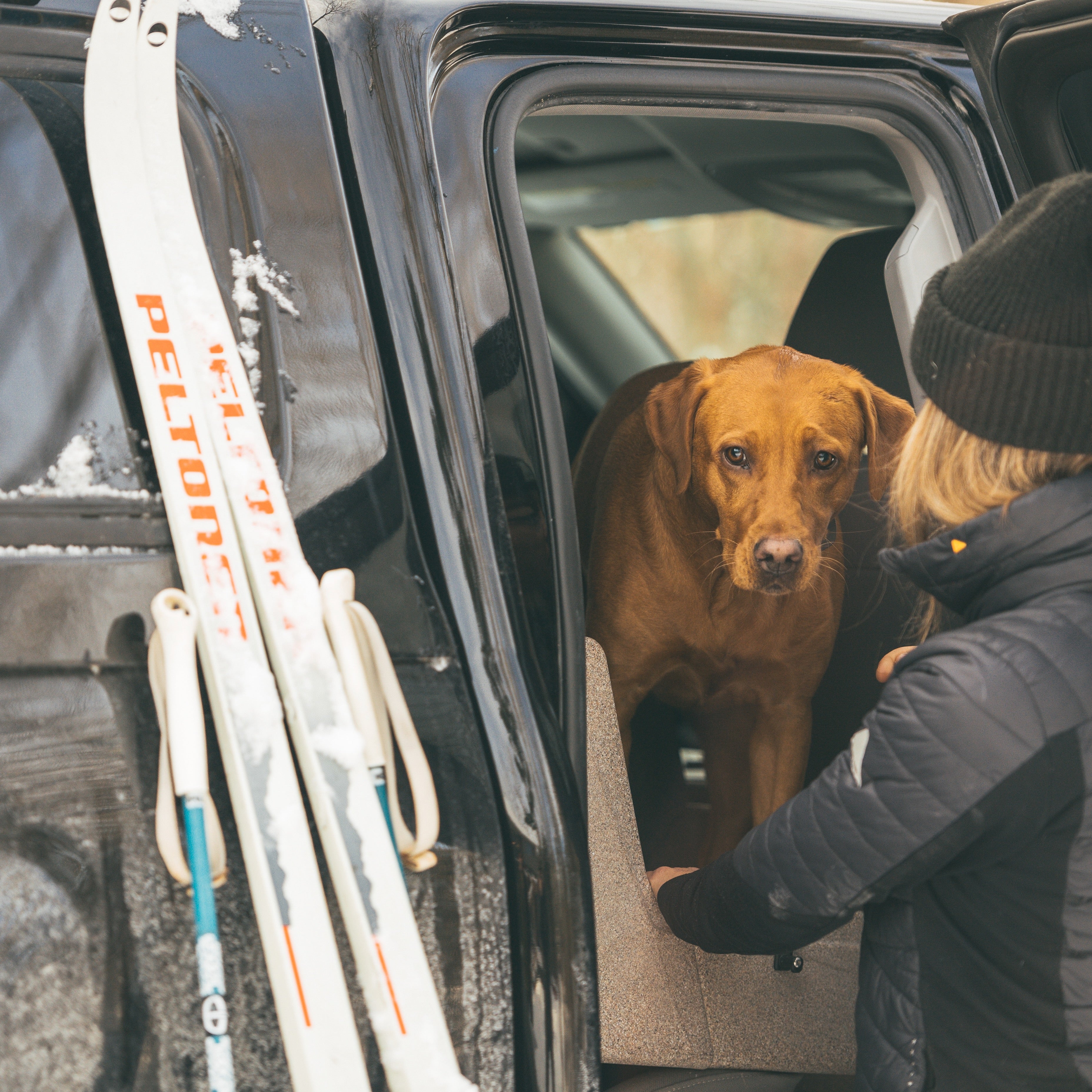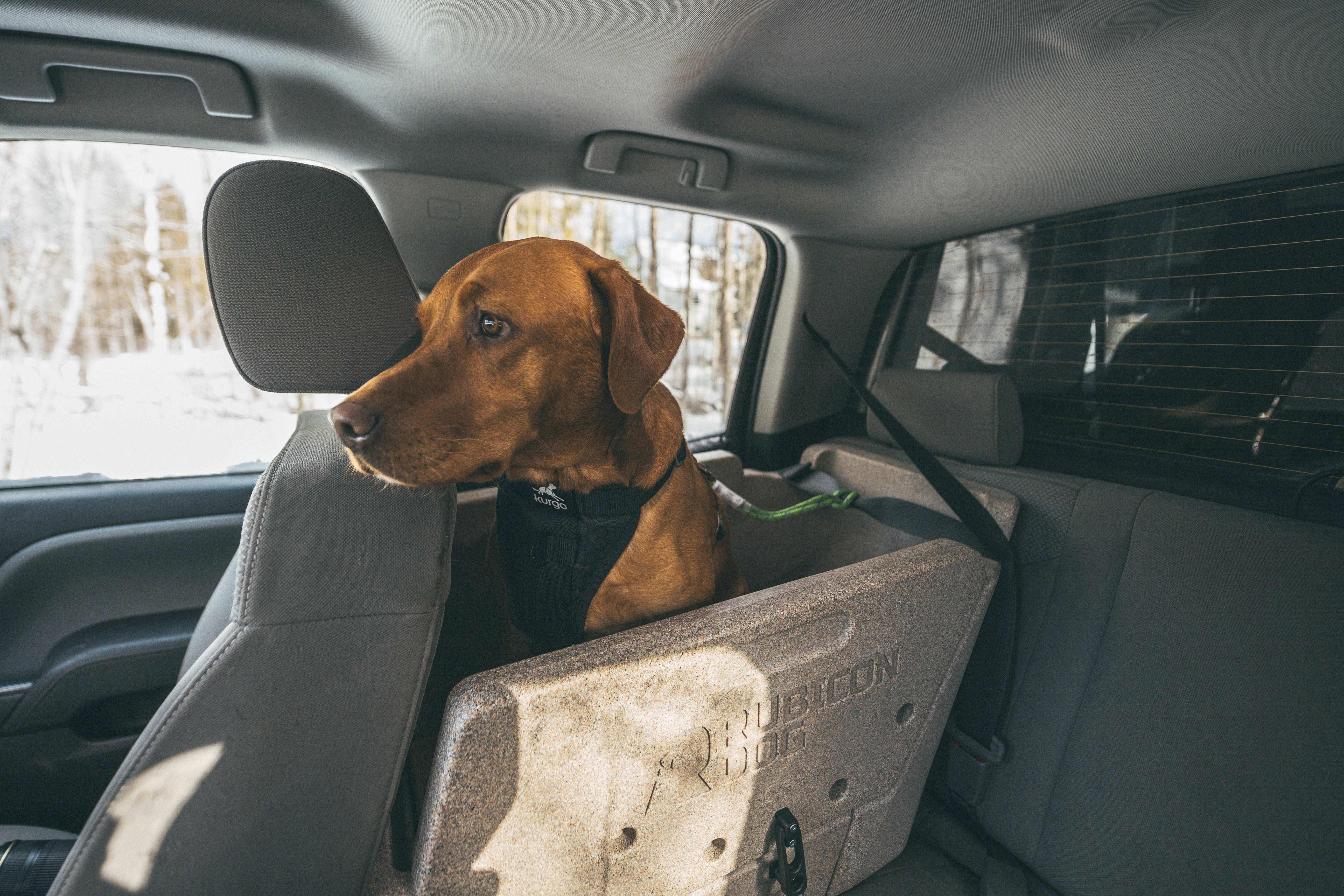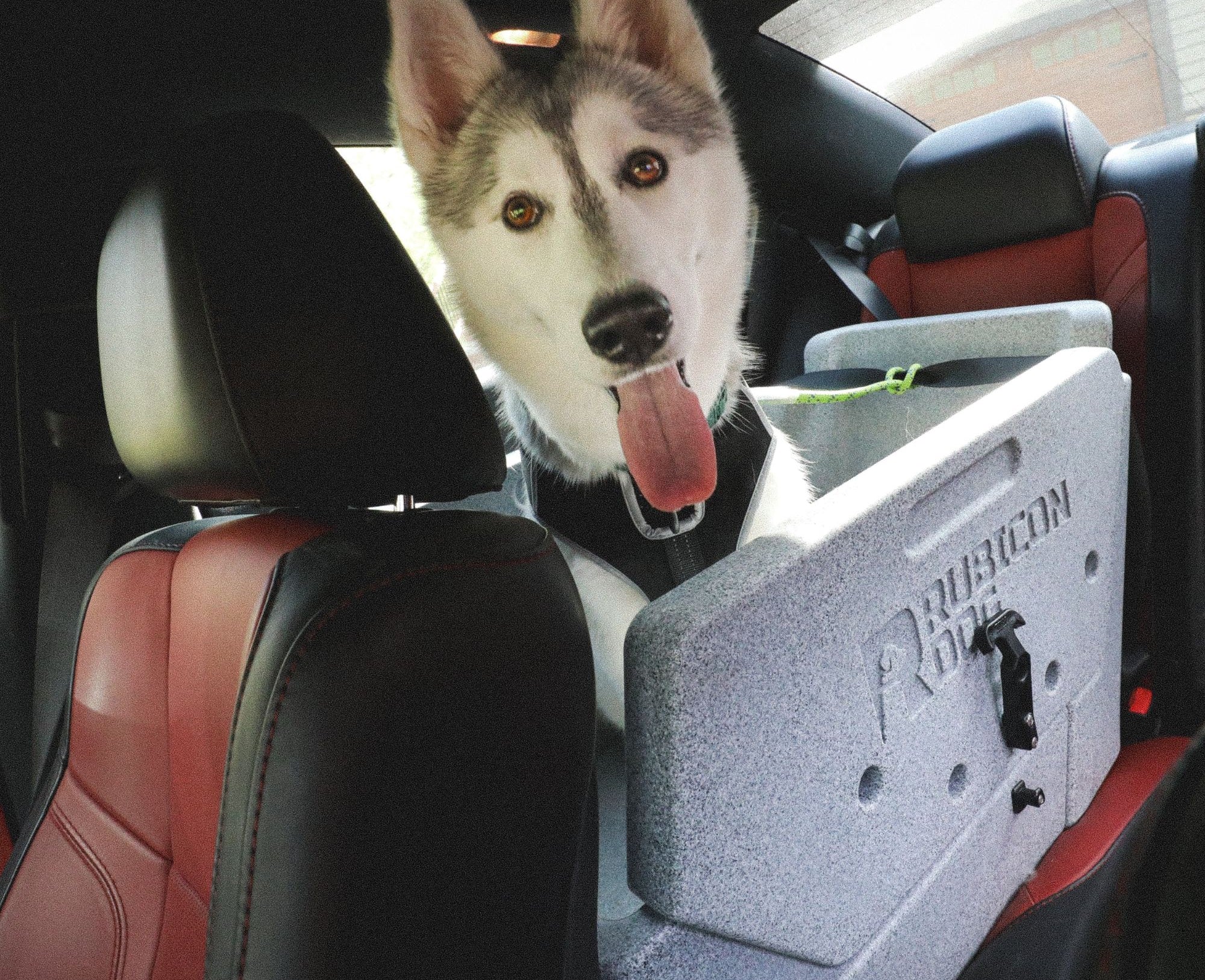 Made in the USA, it quickly gets installed in your vehicle, much like a child car seat, and it doesn’t require any modifications to the vehicle. The front passenger seat legroom is generally not compromised, with some vehicles not losing any legroom while some sub-compacts losing a few inches. Rubicon Dog is compatible with just about any dog harness on the market and the dog is connected to the vehicle’s seat belt.