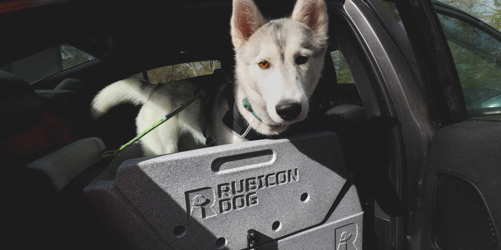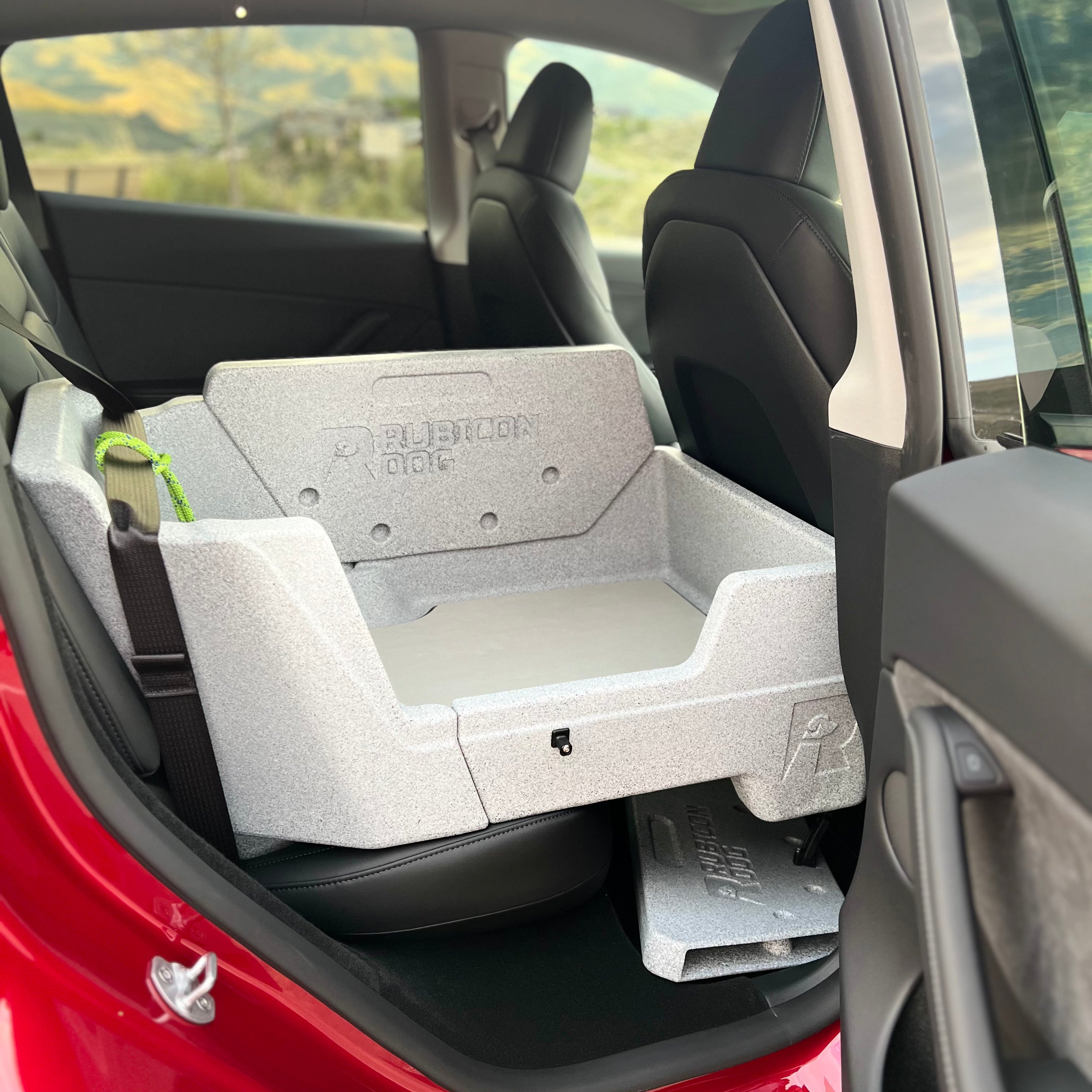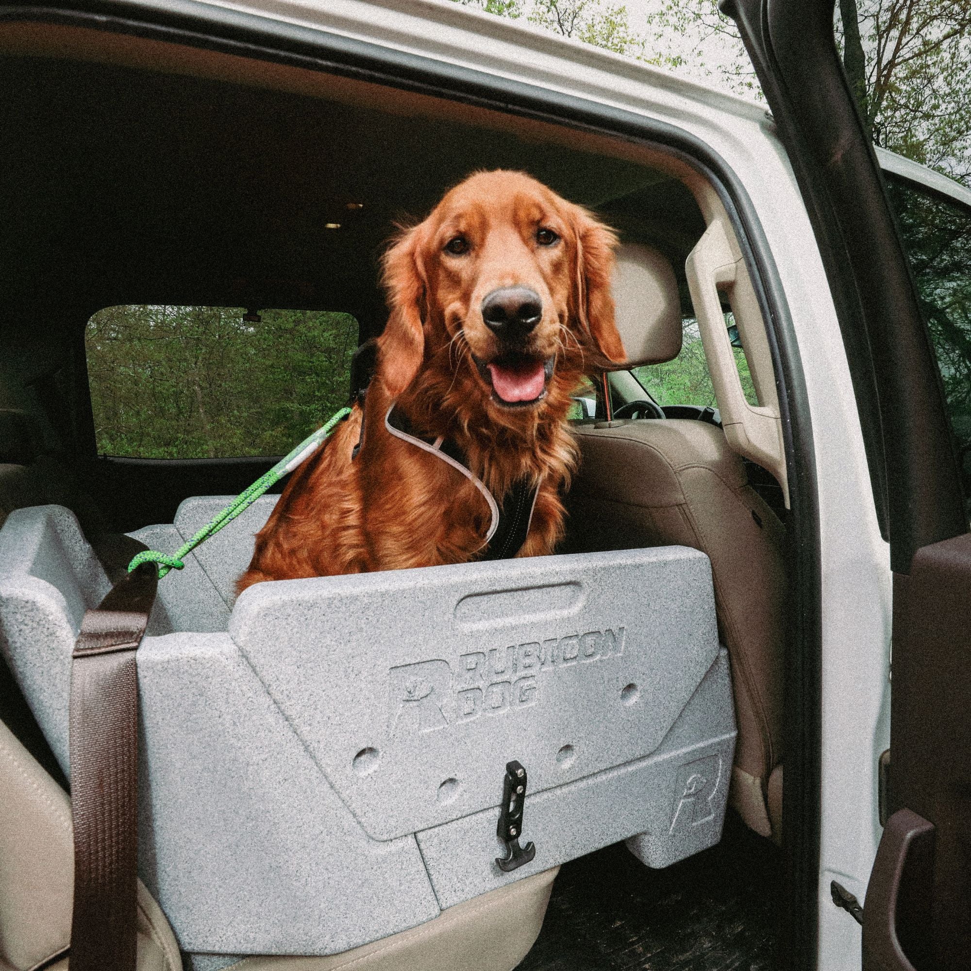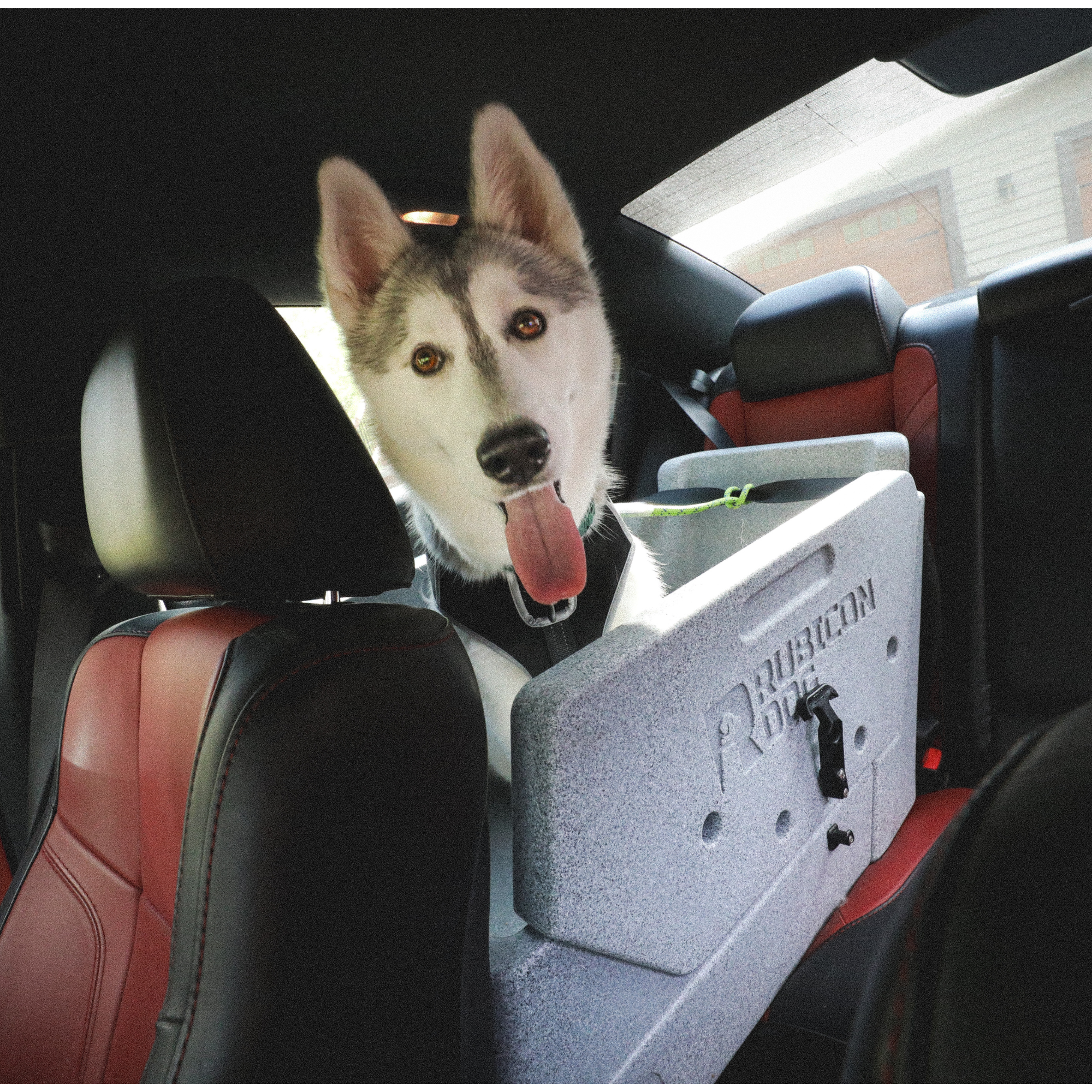 The Rubicon Dog Open Top Crate helps reduce the dog’s car anxiety and claustrophobia compared to a traditional crate and provides ergonomic support to help prevent the dog from flying into the footwell under hard braking or flying across the rear bench on winding roads, off-road trails or around sharp corners. Dogs are able to sit or lay down to sleep in their Rubicon Dog, knowing they won’t suddenly get pitched across the vehicle for reasons they can’t even comprehend. Rubicon Dog is the result of a 100% US-based 2-year design engineering and testing process with real dogs, over thousands of miles. It contains water, dirt, mud, hair and anything else your dog might track into your vehicle.